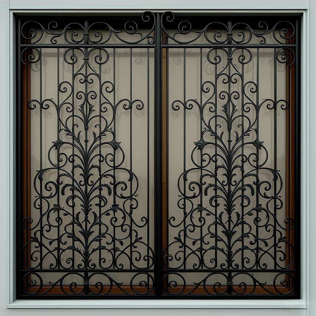 طراحی مستحکم با میله های عمودی و تزئینات هنری میانی که هم امنیت و هم زیبایی ایجاد می کند. |