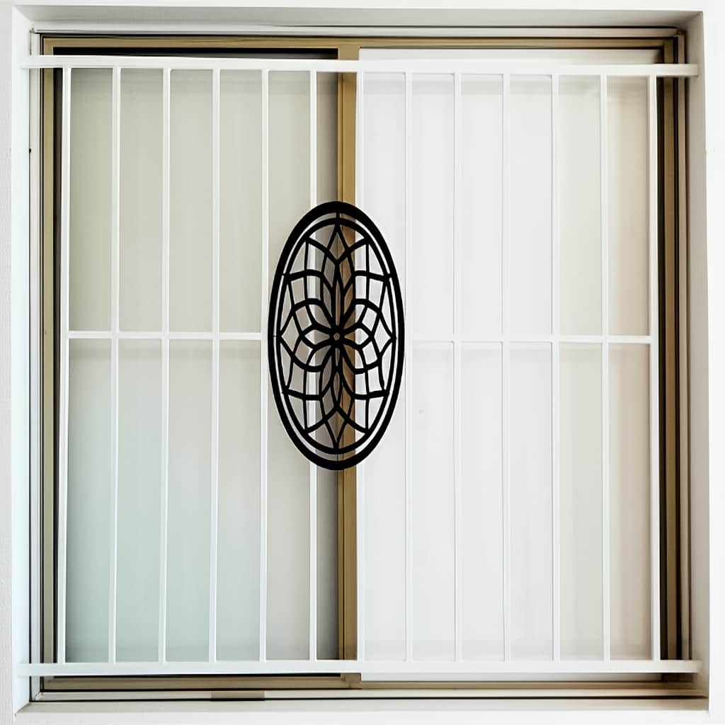حفاظ پنجره مدل خورشیدی - طراحی مدرن طراحی مدرن و مینیمالیستی با شبکه مستطیلی و تزئین خورشیدی مرکزی.